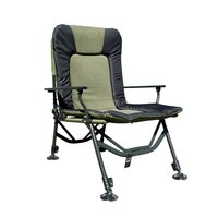 De stoel is voorzien van een stevig, gepoedercoat frame, een dik gevoerde zitting en rugleuning, en 4 verstelbare poten met moddervoeten voor maximale stabiliteit op elke ondergrond. Of je nu rechtop zit of achterover leunt, deze stoel biedt altijd de juiste ondersteuning.